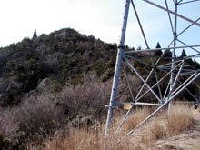 (右)鞍部に出て右に10m位で鉄塔の真下に出る。山頂まで再び急坂だが、あともう一息。