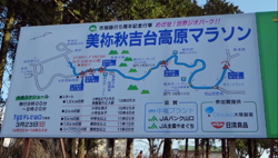 カルスト台地と鍾乳洞で名高い秋吉台をメインコースとする。合併以前は,秋芳町と美東町の共催で,スタート/ゴール地点は1年ごとに入れ替わっていた(美東町は大正洞入口,秋芳町は秋芳洞駐車場または秋吉台家族旅行村からの折り返し)。「美祢秋吉台」からは,秋吉台緑地公園に固定された。 ハーフマラソンは,秋吉台緑地公園をスタート後カルストロードを経由して大正洞に下り,平坦な道を数km進んだ後サファリランド手前で折り返す。以前より平坦路の区間が増えたが,起伏の大きな厳しいコース(高低差は推定150m)。 この時期の秋吉台は,山焼きが終わったばかりで大地は黒々とし芽吹きを待っている状態。早春の風景を眺めながらのんびり走ろう。 | ||||||||||||||||||||||