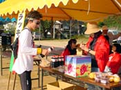 ゴール地点で地元特産品の当たる抽選(空くじなし)。 鮎雑炊、猪鍋の無料サービスもある。 |