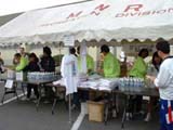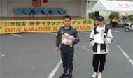 昨年に比べると気温は低いが風が強く、向かい風の区間ではかなり苦戦。特にフルマラソン後 半からは一段と風が強まり、ゴール地点のテントも早々と撤去されはじめていた。 |
