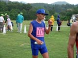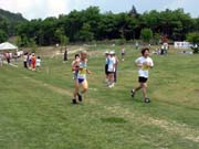 疲労を残したのか、2周目を過ぎた時点でかなりのスピードダウン。 4周目の半分を過ぎたころから空が暗くなり、雨が落ち始めた。スタート時は薄日が差すほどの 天気だったため、着替え等の荷物はすべて芝生の上に置きっぱなしである。こりゃいかんと 必死でペースを上げ(あまり上がらなかったが)、ゴール後すぐに荷物を抱えてテントの下に 飛び込んだ。数分後、桜井選手もゴール。