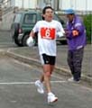 (和崎) 10kmに私と和崎選手と中村選手が参加しました。一般男子は16名申し込みです。 天候は曇り、レース中でなくて良かったのですが、レース終了後はかなり強い雨が降りました。 私の後ろに5人、前が中村選手、その前に一人いて、和崎選手だったので、あと一人欠場者が いれば和崎選手が入賞している可能性があり閉会式に参加しました。 そうすると6位で和崎選手の名前が呼ばれ、昨年に続き連続の入賞となりました。 ここはDr.かとちゃん選手(昨年は42:11)のホームコースで毎日のように走っているところです。 最近の調子からすると6位の和崎選手が42分30秒だったので、 参加していれば初の入賞だったと思われますが残念ですね。