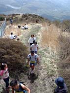 海抜0mの海水に靴をつけて、1375mの鶴見岳の頂上まで一気に上るコースです。 前日に鉄輪に宿泊、蒸し湯に入り、居酒屋で前夜祭をしました。スタートは9時、頂上まで 自動車道を使用しないため、歩道橋や河原の小さな階段の上り下り繰り返しがあったりしな がら、標高500mのロープウェイの乗り場を52分で通過。ここで元さんの応援が ありました。ここから残りの4kmが正念場です。最初のうちは割と平坦で走れましたが、 上りが急になると歩きです。残り2kmあたりでテツ選手を抜いて(昨夜の前夜祭で飲み 過ぎ?)、何回かふくらはぎに痙攣が起こったのを辛抱してやっとの思いで頂上にたどり 着きました。順位は43位、タイムは時計を押し忘れたのでよく分かりませんが、1時間 50分を少し切っています。トップは芹沢選手の1時間14分代、テツ選手は1時間50分 代の48位、和崎選手は2時間5分あたりです。下りもテツ選手とロープウェイの乗り場 まで4kmを走って下りました。 (桜井)