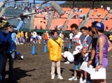 (和崎) 萩の天候は晴れ、私には走っているとかなり暑い感じでした。レース経過は先週の井原と ほとんど同じで、10kmが46分、後半は足が動かなくなりペースダウンし、1時間40分 39秒でゴール。総合291位、部門55位でした。昨年は1時間36分13秒だったので 3分以上遅くなってしまいました。他のメンバーも原田さんが大幅にタイムを縮めたほかは 大幅に遅くなっていますね。 また、初ハーフを走っためたろ〜さんは後半だいぶ苦しんだようですね。足の指のマメは、 温泉で隣に入っていた人がワセリンをしっかりぬっておけばできないと言っていましたよ。 今度試してみてください。