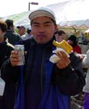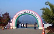 「道の駅」前にランナーズショップや地域特産品、うどん、焼きそばなどの屋台が 多数出店し、レース後はにぎやか。他に、あめ湯、ぜんざいの無料サービスもある。 |