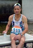 28kmマラニックの部にテツ選手と参加しました。 参加者は、28kmマラニックの部が291人、15kmウォーキングの部が231名で した。かなり雲が出ていて直射日光はなかったものの流石に暑く、9時30分に「水 の国」をスタートし、5km過ぎには早くもペースダウンです。練習を全くしていない のに暑い中、長い距離に挑戦するには無理があり、10kmを53分で通過。12kmの エイドでスイカをたくさん食べて少し元気になり、シャワーやホースで水をかけても らって走りました。船坂峠の登りは涼しくてゆっくり登り、20kmを123分で通過 です。 このコースは実際は28kmプラス数百メートルらしくて、各エイドの距離表示 で例えば19kmを通過したので残りは9km弱と思ってしばらく走っていると、ゴール まで10km看板が出て来てがっかりしてしまいます。残り6kmになってからは暑くて 歩きも入り、残り3kmのところでは3時間まで22分あるので頑張れば2時間台と思 ったが、体がついて行かず歩きっぱなしで、結局は3時間4分でゴールしました。倒 れる寸前です。 テツ選手は2時間25分でとっくにゴールしていました。 (桜井) 初参加の4回大会、一昨年の5回についで3回目の参加でした。 空にはいくらか雲もあり、前2回より気持ち走り易かったようにも思いますが、7月の 太陽の下での28kmは秋空の下のようにはいきません。エードの度に水を被りゴールを目 指しましたが、自分が感じているより後半はペースが落ちていました。コースは20km手 前の船坂峠と、ゴール前の3km続く坂がランナーを苦しめます。特にラスト3kmは、25km 走ってきたところに、時間も正午近くになり暑い盛りで、私は歩かないだけでした。 手元タイムは、5km/22:24 10km/45:55 15kmは? 20km/1:42:34 28km/2:25:04 でした (距離表示は少し怪しく感じたところもありました)。キロ5分以内で走りたいところ ですが、暑さと坂のためか、ハーフや30kmの記録から見るとかなり悪いですね。まあ、 自己記録を10分短縮できましたので今回はよしとします。真夏のレースに飢えている方、 走り込みのつもりで来年挑戦してみませんか。 (余談)桜江町は私の郷里の隣町ですが、今回は当日朝まで内緒にしてましたので身内 の応援はなしでした。また、浴場にランニングとランパンを忘れたようでがっかり。他人 のウェストバッグを桜井さんのもと思い込み持ち帰ってしまった。なんてこったい。 (テツ)