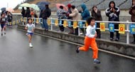 5kmの部にはみっちーさんが久々の参加です。冷たい雨の中、皆さんお疲れ様でした。 10kmはサーキットを3周、私の軽並のボロエンジンと旧式の足回りではスピードがあがらず、 かとちゃんと和崎さんはすぐに視界から消え、原田さんの姿も徐々に遠ざかりました。 5km地点は22分台で通過したものの、更にペースは落ちる一方、結局46分12秒、 年代別30位のゴールです。 他の参加者は、かとちゃんと和崎さんが競り合って39分台、原田さんは43分台(自己新) と好記録を出しました。 (桜井) コースはMINEサーキットの走路を利用し、凸凹のない走りやすい舗装路。レース中ずっと 小雨が降り気温も低かったのですが、思いのほか足が良く動き、序盤から早めのペースで かとちゃんをマーク。本当は2周目くらいまでそのままかとちゃんの背後をつけて行く目論見 だったのですが、1周目後半の上りに差しかかったところでうっかり?抜いてしまい、以後 そのまま追われる形に。しかし、この緊張感が良かったのか、2周目、3周目もあまりペース を落とすことなく結局そのまま逃げ切ってピットイン(=ゴール)。なんと98年の匹見峡 紅葉マラソン(39:53)以来の39分台で、自己ベストを更新しました。 僅か5秒差でかとちゃんもゴール。やはり39分台で記録更新です。 (和崎) 日曜日は朝から雨が降っていたので、和崎さんと一緒に行く約束をしていなかったら、棄権して 自宅でテレビを見ていたと思います。 寒くて楽しめる状況ではなかったですが、桜井さん、 Dr.かとさん、和崎さんの後を追いかける予定でした。しかし第一コーナーでかとさんと 和崎さんは視界から消え去っており、自分の走力のないのにガッカリの一日でした。 (原田)