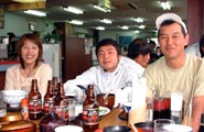 一人だけ、火星の上を走っているみたいでした。追い抜く時のさくらさんの元気といったら、それはもうすごいの一言。私は、頭上を飛び越されたような錯覚に落ちました。呼びかけてくれた声にも"ドップラー効果"が作用してました。(戦意喪失) あきらめていると、復路には若干の上りがあり、そこでは、さくらさんとの差が縮まるではありませんか(今度は金星人??)。 でも、すぐまた下りで、ピュ〜ッと見えなくなります。さくらさんに勝つためには、上りっぱなしのコースを選択するしかありませんね。 何とか前の人と離れないように頑張っていると、ラスト1km地点でカブさん発見。カブさんは故障中。とはいえ、3連敗中の私。今日しかない。戦闘モードに切り替え、ダッシュで抜き、なんとか逃げ切り、初勝利を手中にしました。満足です。 レース後のお風呂も食事も、人数が多くて楽しかったです。皆さん、お疲れさまでした。来年も頑張りましょう。