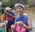レース前の体育館では藤田さん、高知の森下さん、横田さん、小野会長まで見えられ話が弾みました。レースは森下さんマークでスタートしましたが、校庭を抜けるころには視界から消えてしまいました。テツさんに抜かれ、一升谷に差し掛かるころに、かんじさん、松原さんに置いて行かれましたが、ペースはさほど悪くないので、登りきるまでに何人か抜き、下りも快調に数人か、数百人か?抜きながらの走りです。例年この下りで桜井さんに抜かれるのですが、今回は和崎さん、めたろ〜さんの姿もまだ見えません。(この時点で4時間台でのゴールは楽勝だと思ったのですが・・・)