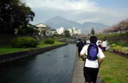 前日は恒例のただ湯にただで入り別府の湯を満喫しました。(※和崎注:善良な観光客の皆さんは、入口の賽銭箱に100円を入れてください。)もちろん宿の料理は美味しく、本能のおもむくままに食い尽くしました。おかげでさらに体重が増加しました。 夜は蚊の大編隊に夜襲を受け無念の撤退(ロビーで雑誌を読んでいました)で一睡も出来ませんでした。とほほ。
