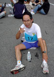 前日の夜到着し、先発の和崎さんとめたろ〜さんと合流(大山等へ登山予定が雨のため船上山登山と映画になったとのこと)して、車中泊です。翌朝4時に起きて大山に登る計画をたてていたのですが、起きたら5時過ぎ。それに星が出ていなかったので、睡魔に負けた魔王から中止の指令が出てホッとしました。実は明るくなったら良い天気でした。 今回のナンバーカードは17番、年の順なので毎年減っていきます。 前半型なので、目一杯走ってめたろ〜さんをリードして5kmを26分ちょっとで通過、しかしその先の急な登りで止まってしまい、頂上付近でめたろ〜さんに抜かれました。そして後は姿がだんだん遠くなる一方でした。SAKURA(兄)は5km年代別で10位入賞です。 レース後、小雨でしたが三鈷峰へ登ることにしました。しかし途中から雨が激しくなり、道もかなり険しいことから,魔王から登山中止の指令が出ました。先に見える二つの頂上のうちどちらが三鈷峰かわからないままの引き返しです。下りで左足が2回も痙攣し激痛です。 宿泊は関金温泉です。途中で食料を仕入れ,米は小袋がないため2kg入りを買いました。料理作りはめたろ〜さんです。とても美味しかったです。 (桜井) 22日(魔王の憂鬱) ![]()