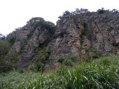 雨の日南町を抜け日野町に入ると、雨があがり空も明るくなった感じ。どうやら三鈷峰は大丈夫そうと安心したところで、昼に近かったので今回もまた溝口町の「鬼っ子ラーメン」で腹ごしらえ。めたろ〜さんがいつになく小食なので聞いてみたら、列車の中でしっかり間食を済ませてきたとのこと。それと驚いたことに、前回立ち寄ったとき(7月の大栄すいかマラソンの前日)に店に忘れてきためたろ〜さんの帽子がまだ残っていました。もうひとつ、アディダスの白いランニングキャップが残っていましたが、誰か心当たりはありませんか? 回復したように見えた空模様は、大山に近づくにつれて再びくずれはじめ、登山口の大山寺は雨。マラソン会場ではすでに何人かのスタッフが準備にかかっていました。近くの駐車場で1時間くらい待ってみたものの雨はあがりそうになく、三鈷峰登山も断念。 海側に出れば天気が回復していそうなので、少し高度を下げて琴浦町(9月に赤碕・東伯2町が合併)の船上山に登ることにしました。目論見どおりこちらは雨もあがっており、草に残っていた雨露で体はかなり濡れましたが、無事山頂を踏んで下山することができました。