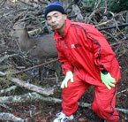 宮島は家から近いこともあってゆっくりと出発することができとても楽に会場入りすることができました。会場に到着すると早速URCのメンバーを捜索開始、まず発見したのはショップの手伝いをしていたかんじさん、しばらくしてテツさんとめたろ〜さんも発見できました・・・ほっ。皆さんの元気そうな顔を見て私も元気が沸いてきました。その後、ショップの手伝いで忙しそうなかんじさんを置き去りにして3人でアップを兼ねてのコースの下見に行くことにしましたが、いきなり急な上り、そしてまた上り、またまた上りあとは下りと上りの繰り返しで下見でかなり疲れてしまい本番に不安を感じました。・・・下見をしない方がよかったかなぁ?