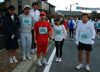 スタート後、論外のハコさんは別にして、キロ5分のめたろ〜ダッシュをしたのですが、1キロ過ぎで失速し、めたろ〜さん、maruさん、なかむらさん、和崎さんの順にスイスイと抜かれると、あとは離れる一方でした。そして、今までより6分くらい遅い、57分21秒、87位でゴールしました。 (桜井) 桜井さんと私は天草の足の疲れが取れないままの参加です。