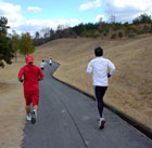 現地までは、めたろーさんと一緒に行動を共にし9時30分に到着、早速受付に行くのですがあまりの寒さに受付終了後はめたろーさんと二人で車にこもりスタート時間の20分前に超軽めのアップ。しかし、寒さには勝てず5分程度でまた車に戻りました。そして、10分前になったので寒さに堪えてようやくスタート地点に向かうという怠慢・・・・・・。 スタート地点では桜井さん、和崎さん、maruさん、なかむらさんと対面、そこで少しの談笑を楽しみました。去年の記録更新を狙ってスタートラインの前方へ位置を取り、スタート後はいつもよりハイペースですが思った以上に体は軽くスムーズに足は動きます。5km過ぎからの上りではややペースダウンするものの下りでペースを上げ最後の上りはヤケクソで走りました。 (かんじさん撮影の写真でわかるようにものすごい顔で走っています。) 記録は去年より1分以上の短縮ができとても満足しています。 めたろーさん>帰りの車の中で風邪をひいたと言っていたのですが大丈夫ですか?無事に帰宅されましたか? (ハコさん)