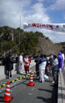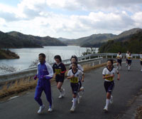和崎さん、ハコさんと10kmを走りました。冬型の気圧配置でときたま雪がまっていましたが、レース中は走りやすい天気でした。参加の皆さんお疲れ様でした。体重が一割り増しで練習なしの走りですが、なんとかゴールすることができました。前半は下りが多いような感じで23分30で折り返し、そして後半は思ったほど上りがなく25分かかってゴールへたどりつきました。 ハコさん>早く帰らなければ谷口選手のサインをもらえていましたよ。 (桜井)