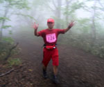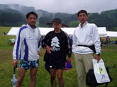 比婆山スカイラン、えびすだいこくに参加のみなさんお疲れさまでした。スタート後に雨が降り始め、伊良谷山までは道もぬかるんでいなかったのですが、その後だんだんとぬかるみはじめ、後半はぬかるんで滑りっぱなしでした。まるで2002年の再現です。この状態なら是非原田さんにも参加してもらいたかった!! タイムも2002年は2:23:52だったのですが、今回は2:45:55で総合162位、部門54位でした。 スタート後、下ったところでトイレ休憩、そして伊良谷山の頂上付近までは走ったのですが、ここで体力の限界が来ました。あとはひたすら歩いたりゆっくり走ってゴールに向かいました。前回2002年はぬかるみも関係なく走っていたのですが、今回は怖くて走れません。おまけに滑りまくって転倒1回、転倒しそうになること数知れず、転んだ際に泥で右足が真っ黒になってしまいました。 (桜井)