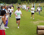 ひろしまクロスカントリー大会に桜井さん,和崎さん,めたろ〜さん,maruさん,ツガニさんと参加しました(全員8qの部)。また,しもさんファミリーが来場されており,こたろ〜君が1qの部に出場し惜しくも入賞を逃してしまいました。天気予報では午前中から雨が本降りになるようなことを言っていましたが,10時前に会場に着くと風は強いものの時々陽も射すような天気で帽子等の夏用装備を持って来なかったことが悔やまれました。 スタート時間は12時30分と夏場に開催される大会としてはとんでもない時間帯ですが,幸い陽射しもなくなりかなり涼しさも感じられる中で号砲が鳴りました。スタート前に私の母校であるE大学のユニフォームを着た選手を発見し,よせばいいのに第1周回(2q)は彼に付いていってしまいました。 第1周回は8′08″くらいで通過しましたが,明らかに飛ばしすぎでそこからは後続の選手に抜かれる一方となりました。第2周回の給水所で水を飲んでいたら,ツガニさんがスッと抜いていかれました。何とか後を追い丸太障害の飛越で逆転しゴールまで逃げ切りました。第3周回は第2周回より粘ることができましたが,前を行く選手をほとんど抜くことなく終わりました。