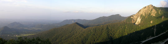 大山へ移動して日没登山です。滑落者があったとのことでヘリが飛び回っていましたが、4時50分頃から登りはじめました。登りが急になると足が出なくなり、明るいうちに下山できる6合目で引き返しました。めたろ〜さんと和崎さんは当然山頂へ。