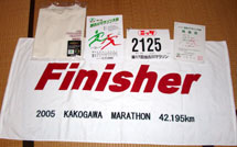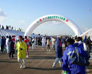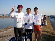 開催地は兵庫県加古川市で,早朝の新幹線を使えば日帰りが可能なことから午前5時に起き,広島駅発6時44分の新幹線に乗り,加古川駅には8時10分に到着しました。加古川駅から会場までは無料のシャトルバスが出ていたのですが,これに乗る人が長蛇の列を作っており,バスに乗るのに20分以上待たされました。そんなこんなで受付終了時刻までに受付ができない選手が続出したため,スタート時間が20分遅くなりました。9時30分現在の気温は0.6℃と非常に寒く(加古川の河川敷が会場ですが,加古川の滞留部は結氷していました),また,前日降った雪がいたるところに残っていました。 フルマラソン一般の部は10時20分に快晴,微風という私には最悪のコンディションの中スタートしました。スタートから2qほど走ったところから残雪が融けだして走路を水浸しにしている箇所が連続するようになり,結局雨の中を走っているのと変わらないような状況になりました。 この大会は折返し点が2箇所あるコースで,10q付近の第一折り返し点までは5q:22分ほどの快調なペースで進みました。しかし,第一折り返し点を過ぎた頃から川面を渡ってくる冷たい向かい風が次第に強くなってきました。13q地点で加古川の左岸側から右岸側に渡った辺りで,走る気力を萎えさせるような強くて冷たい向かい風に見舞われ,それまでのペースが維持できなくなりました。それでも第二折り返し点を過ぎ30qまでは5q:23分台のペースで経過しました。再度川の左岸側に渡り返して35q地点に差し掛かると,前に進むのも難しいほどの向かい風に行く手を遮られ大幅にペースダウンし,最後はやっとの思いで3°30′を切ることができました。 今回走ってみて,このコースにはアップダウンは無いといってよいぐらいで,条件がよければ記録がねらえると思います。フルマラソンの自己ベストを目指される方は一度検討されてはどうでしょうか。