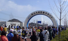 新北九州空港マラソンのハーフの部にテツさん、酒好きランナーさん、siriusさん、maruさん、tuganiさんと参加しました。北九州は晴れ、少し風があったものの気温も低く走り易い天気でした。サザンセトはいかかでしたか。みなさんお疲れさま。 参加者が6,838名と多いため道路は大渋滞です。小倉東インターを降りてから前に進みません。会場に着いたのはスタート40分前でした。 スタートは10時、ハーフの部の申込みは4,581名のため、前が詰まっていてゆっくりしか走ることができません。2Km当たりでやっと遅いランナーを避けることもなくなりました。コースは概ね平坦ですが、新北九州空港連絡道路(往路4〜5Km、復路14〜15Km)は緩やかな上りがあります。また滑走路に入ると一週5Kmほどの平坦なコースでした。 滑走路を回った13Km当たりから足が前に出なくなりました。14Km付近で空港見物をしていたtuganiさんが抜いていき、すぐに見えなくなりました。あとはしんどいのを辛抱して何とかゴールにたどり着きました。 (桜井)