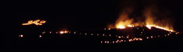 マラソン前夜、家族旅行村周辺で「秋吉台野火の祭典」(夜の山焼き)が行われ、19時頃から太鼓の鳴り響く中、草原に火が放たれた。例年3月第1土曜日に実施(雨天順延)。 |