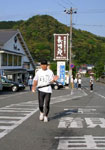 萩有料道路に入ると奇跡のように足が動くようになった。上りも少し走って萩有料道路休憩所に到着、ここでなんと不調のテツさんに追いついてしまった。急な上りは早足で、ほかは普通に走ることができるので、ペースが上がった。萩に向かうランナーや歩行者に「こんにちは」「お疲れさま」と挨拶し「ガンバってください」との声援をいただく。A、Bのランナーを抜きながら一升谷を越える。しかし好調はここまで、一升谷の頂上で暑さと一気につけが来たのか動けなくなってしまった。歩く速度も極端に遅くなる。しかし、なかなかテツさんが追いついてこない。なんとか旭村佐々並市エイドステーション到着した。残りの時間も気になってひたすらゴールに向かって歩き続ける。陽射しも強く暑い。夏木原キャンプ場へのなだらかな登りが辛い。やっとのことで萩往還最高所560mの板堂峠に到着した。ここからは下りだ。痛い足をこらえてゆっくりと走って下る。 (桜井)