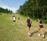 登山道の長い急坂を越えたあたりからすこし体が回復したので、ラスト800m(登山道入口)まで再び走りました。その後は例年どおり。ゴールしてみたら3年前の記録を5分下回る過去ワーストのタイムでした。先行の3人はすでに下山し、山頂は防府空自の団体(色別のユニフォームで2チーム参加)でごった返していたので、後の2人を待たず山頂をあとにしました(が、下山道が渋滞しなかなか進めませんでした)。 スキー場ロッジでの素麺も、参加者が例年より100人くらい?多いのですぐに品切れ〜行列となり、食べられそうにないので、トマトを3個いただいて願成就温泉に向かいました。 夏バテがかなり重症で、来週の村岡が非常にやばいです。 (和崎)