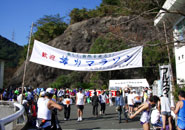 会場到着は9時30分の数分前で,受付をして数少ない便所で雉を撃っていたりしたらウォーミングアップの時間が無くなりました。やむを得ずノーアップで走ることにしたのですが,スタートして1qほど走ったところで小用をたすはめになり,前途多難を予想させる展開となりました。コースは鱒渕ダム貯水池をほぼ4周するもので,2年前にかんじさんが走られ平坦なコースと感想を残されていますが,その感想に偽りはなく小さな上り下りが数箇所あるものの,平坦コースでした。また,スタート地点は直射日光を浴び暑く感じられましたが,コースの約8割は湖畔の木陰の中を走ることになり,暑さも気になりませんでした。