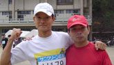 天候は曇り時々雨でしたが、私が走っているときはほとんど雨は降りませんでした。また、風もなく寒さも感じず私にとっては良いコンディションとなりました。開会式終了後、A組から順次スタートして行き私の参加したI組(40代)は10時50分にスタートしました。 今年も、10分前にスタートした赤い彗星ことめたろーさんを追って、スタート直後よりハイペース?で急な坂を頂上(1km付近)まで駆け上り、一気にごりょう橋まで駆け下りました。(3km付近) ここまでのハイペースで、かなりスタミナを使い切ったためか呼吸も荒くなり、足も前に出なくなりペースダウンしましたが、包ヶ浦公園の折り返しで赤い彗星を発見すると、残りのスタミナを使いペースアップ。ついに撃墜。ヘッヘッヘッ・・・。(でもなんでtsuganiさんが・・・?) 赤い彗星を撃墜することにスタミナを吐き出したため、残りは気力とDEKANの方(多分ムラさんでしたっけ?ありがとうございました。)の声援をうけなんとかゴールに辿り着けました。 すぐ後ろにサスケさんがいたとは・・・。フッあぶなかった。 部門17位 43分46秒前回より少し記録更新。 次回は、岩国基地の10km。そして、いよいよ青島フルとなります。最近、10km前後の練習で長い距離を走っていないので青島はどうなることやら・・・。 (ハコさん)