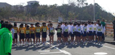 数年前は山口URCの新年互例会のようなこの大会も出場者が減り,今年は3人だけとなりました。会場ではmaruさん,HAKOさん,sakuraiさんの順で今年の初顔合わせを済ませることができました。スタートは11時05分で,昨日ボロボロになった影響からかウォーミングアップのときから体が重く,記録をねらえるような状態ではないので流れに任せて走ることにしました。ゴルフ場内に入ってクラブハウス前までの上りが終わった段階で全体で40番目あたりを走っていましたが,この順位はゴールまでほとんど変わらなかったと思います(その後2,3人抜いたが,2人に抜かれた)。上りは相対的に走れるものの,下りは他の選手のようにスピードに乗れないことが原因のようです。 また,暖かく感じたとはいえ気温そのものは低いままで,しかも時折吹く強風により,昨日と同じように腕の感覚が無くなってきて,自分の体であって自分の体ないような状態で最後は走っていました。 記録は昨年より15″遅くなっています。最悪条件下の翌日のレースとしては良く走れたといえるかもしれません。 (サスケ) 天気予報では荒天、しかし朝起きると晴れていて風もない。高速道路に乗ると徳山東から東は冬用タイヤ規制があり、徳山東からは一般道で和木町に着きました。雪は道路には無いが結構残っています。しかし、いつものマラソン大会の看板が出ていない。中止かと思っていたらなんと一日早く来ていたのでした。