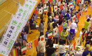 受付をして歓迎祭に参加です。10回連続出場の人には名前入りの幟が出ていました。私とテツさんの幟がありました。そして約1名は食べまくりです。