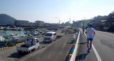 コースは旧大会とは正反対の方向に進みます。以前同様に概ねフラットなコース・・・と言いたいところですが、以前よりもアップダウンが目立つコースになっています。特に5km地点の前後にある大きな坂(高低差は30mくらい?)は、折り返し後ラスト5kmにおいては、足の弱ったへたれランナーの心臓を直撃する最大の難所となっています。往路では、この坂を越えて下りに入ると外海が見えはじめます。