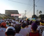 翌日は天草マラソンのフルの部に和崎さんと参加しました。天気は晴れ、走っている途中は暑く感じました。ゲストは駒沢大学陸上競技部の大八木監督です。フルマラソンの制限時間は7時間(関門は30km地点5時間)です。参加賞はTシャツ、みかん,温泉入浴券、500円の金券でした。