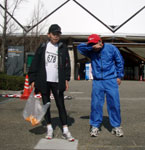 かなり楽だったのでこれならゴールできるな〜と思いながら走っていると折り返してきた和崎さんとすれ違いました。こちらは今のところ対象外なので華麗にスルーしました。その後桜井さんが折り返してきました。差は約400mほど付いていました。こちらは対象物です。 この差なら残り5キロでペースを上げラスト1キロで飛ばせば何とかなるな。ふっ。 とか思いつつ走っていると、13キロ位でしょうか?マークさせてもらっていた完走狙いグループが徐々に離れ風味になってきました。あれ? 15キロ地点では完走グループは見えなくなっていましたw。 そしてペースを上げる予定だった残り5キロから歩きが入ってしまいました。 そこからは足が棒のようになって動かなくなり、20キロ地点でタイムアウトとなりチップをむしられてしまいました。予定ではゴール前で桜井さんをGETするはずだったのに。。。 いきなり2連敗してしまいました。今後の巻き返しに期待!。。。出来そうもありません。 (めたろ〜)