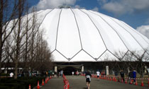 朝9時過ぎに会場到着,既に近くの駐車場は満車でした。受付を済ませて軽く走ると右膝が痛みます。昨日の筋肉痛の痛みではありません。