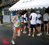 10Kmを58分位で通過しましたが,15Km付近で昨年と同じようにグループトップが抜いていきました。しばらく走るとお腹の具合が悪くなってキジ打ちです。20Kmは2時間3分位です。曇りで気温も低くく走りやすい天気でした。しかし,20Km前後の上りから歩きが入ってしまいました。