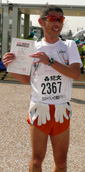 そうじゃ吉備路マラソンは35Kmの関門にかかりました。フルの部にブロディさん、サスケさんと参加しました。めたろ〜さんは足痛のため欠場です。倉敷ICから約7Km、10分弱で8時頃に駐車場へ到着しました。天気は晴天です。10時にスタート、後方からのスタートだったのでスタート地点まで約1分かかりました。10Kmは56分30秒、ハーフは2時間2分で通過しました。27Kmくらいまではなんとか走っていたものの、暑くてオーバーヒートして足が止まってしまいました。頭から水をかぶりながら歩いていたら、関門と言う声がします。35Km関門時間をすっかり忘れていました。この声で不思議と足が動いて走ったのですが、競技場の入り口に来たところで目の前のゲートが閉められしまい、関門第1号になってしまいました。 関門時間は3時間50分、残り7Kmは1時間10分あれば歩いてもゴールできると思っていたので残念です。 (桜井) | |||||||||||||||||||