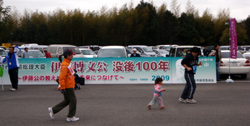 帰りの峠は(往路と比べて)やや緩やかな長い上りから急な下りとなり,運動公園に向けて再び上りとなります。この最後の上りの途中で5km最終ランナー(=光市長)を抜き,43分台半ばでゴールしました。順位は不明ですがゴール手前で混戦となり3〜4名に抜かれました。中村さんは48:40でゴールです。昨年にひき続き抽選に当たりました。今年の賞品はトイレットペーパーです。 大会プログラムの裏表紙には,来年の開催予告が書かれてありました(3月13日予定)。昨年の開会式で聞いた「ファイナル」という言葉はどうやら「伊藤公没後100年記念行事の"ファイナル"」という意味だったようでひと安心です。 レース後は近くの山に登ろうかと思っていましたが,雲行きが怪しくなり雨が降りそうな気配となってきたので,早々に引き上げました。 (和崎)