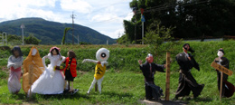 10Kmの部にHARADAさん、かんじさん、中村さん、DOIさんと参加しました。10Kmの部の参加者は約300人です。天気は晴れ、風があったので死ぬほど暑くはありませんでしたがトップのタイムは少し悪いようです。7時前に受付をしてバスでスタート地点へ移動しました。嘉年かかしまつりの写真を撮ってからスタートです。中村さんと最後尾からスタートしました。登りになって中村さんを抜き、何度か歩いてロッジ前を通過しました。 それからも歩きと走りを繰り返していたら、6Km過ぎで中村さんに抜かれてしましました。あとは追いつくことができません。8.5Km近くでDOIさんに追いつき、9Kmは約55分で通過、残りの1Kmは15分近くかかり、何とか1時間20分を切ってゴールしました。 ![]()