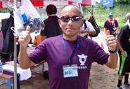 参加賞は,レジャーシート・クリアファイル・タオル・色鉛筆セット・団扇・ミスズボウル1ゲーム招待券と数が増えました。参加賞を入れる袋もエコバックと言うことで参加賞の一つです。 3qの出場者は昨年の2倍に増えたそうで,こんなイロモノの大会でも参加者増が止まりません。 |