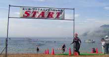 Aタイプ(スイム2.4km+ラン20km)一般対象,定員100人,スイム制限時間90分 Bタイプ(スイム1.2km+ラン8km)初心者・高校生対象,定員100人,スイム制限時間50分 Cタイプ(スイム0.3km+ラン3km)中学生対象,定員50人 Dタイプ(スイム0.1km+ラン1km)小学生対象,定員50人 A・Bタイプにはリレーの部もあり,それぞれ定員は10組。 | ||||||||||