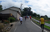 第21回ぶどうの里ふれあいマラソン20kmの部に,原田さん,めたろ〜さんと参加しました。ツガニさん,しょうじさんも20kmに参加です。皆さんお疲れ様でした。5時に山口を出発し,山陽道を東進中も山口県や広島県西部では所々で雨が降り,日中の天気の悪化が心配されました。が,会場に着いてみると雨の気配はなく,時折晴れ間がのぞいて灼けつくような日差しが降りそそぎます。むしろ熱中症が心配になりました。 20kmの部は10時にスタートです。先週の瑞穂から結局何もしないままでいたので,最初から記録更新は諦め,完走(できるだけ2時間以内)のみを目標としました。出発も後方からです。葡萄浪漫館までの上りは,混雑もあってゆっくりペースとなり,いいウォーミングアップになりました。急降下して再び上りはじめ,最初の折り返し枝道往路でめたろ〜さん,原田さんとすれ違いました。この時点で数百mくらいの差。先行している「はず」のツガニさんは当然見えません。 折り返し後,短い上り坂をなんとか走りきり,少し下って再び上ります。今回はここであっけなく力尽きました。以後,仁井山の最高所(那須一族の墓)まで,上りがきつくなるとすぐに歩きに切り替え,平地と下りだけ走るという状態。ここまでは上り主体なのでどんどん時間が過ぎ,次の折り返し枝道(概ね11km〜12km)ですれ違っためたろ〜さんとの距離はほぼ1kmくらいに広がっていました。(その後,青野ダム湖の手前で再度すれ違いました。約2km差)