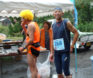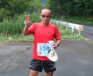 自宅で4時間ほど寝て、午前3時半に会場に到着しました。スタートゴールに一番近い駐車場はすでに満車でしたが、一台くらいならと入れてくれました。サスケさん、HAKOさんと一緒にスタートしましたが、ゆっくり走っている間に便秘の栓が抜けたようで、10km〜25kmくらいまでは毎回トイレ休憩しました。そして蜂事件に遭遇し、お尻に注射され痛みをこらえながら、ゴールまで走ることとなりました。おそらく20名位は被害に遭ったと思われます。 桜江ピクニックランの時のように、気持ちのいい速度で、体のリズムに合わせてゴールまで走りとおしました。走りやすかった天候と、自分に合ったコース設定のおかげか、10時間切り出来ればいいかなと思っていたのですが、8時間25分?でフィニッシュしました。コースの声援も多く、とても楽しい大会でした。 17日の中国新聞にしわいの記事と写真がありますが、ブルーのウエアは私でした。 (ブロディ) しわい&ぶどう参加の皆さん、おつかれさまでした。ちょっと肌寒いくらいで走るにはちょうどよかったのでは? 私は9月の第2日曜日はマイタケ探索山行と決めているので行き先を恐羅漢山にして登山口で応援をすることにしました。9時ごろ通過と予想を立て8時40分にはエイド到着を目指して内黒峠を登っていると早速トップのランナーとすれ違いました。よく見ると前に豊臣ACで一緒に練習していたN君でした。ガスで視界の悪い中をカッ飛ばしていました。新記録で優勝されたそうです。おめでとうございます。 さて、エイドでは次々に上位のランナーが入ってきます。多くの選手が蜂にさされたらしく、関係者はその対応に大わらわでした。「そこまでボランテイアに対応しろと言っても無理だよなぁ」という声も聞かれました。しばらくして救急班がリムーバを持ってきましたが、今後トレイルランの大会出場の時は携帯すべきかと思いました。リタイヤした選手は残念でしょうね。 URCのメンバーではハコさんブロディさんサスケさんが快調に走り抜けていきました。おっと、ブロディさんとサスケさんの間に福岡県代表の藤田さんの姿も、、、でもちょっと様子が変です。なんだか内また走行です。どうやら大事なところを蜂にやられたとのことでした。しかし後半の追い上げて好タイムでの完走はさすがですね。 皆さんを見送った後、霧雨の中、恐羅漢山のブナ林を堪能し早めの下山をしたので、井仁の棚田あたりで土井さんの応援に間に合いそうだと思い、急いで登ってみました。しばらく待ってみましたが見当たらず、あきらめかけて下っていると土井さん発見。去年失敗したので、今年こそと言いながら元気に走り去っていきました。完走おめでとうございます。 (かんじ)