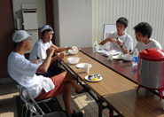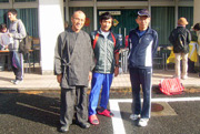 sakuraiさんと三浦さんに挨拶を済ませ、証拠写真を撮り終えた後は、アップがてらコースを逆走して月に一度開く地元のパン屋さんへシホンケーキを予約しに行きました。早くいかないといつも売り切れなのです。このアップで10q。あとはレースで20q、都合30qのメニュー消化です。 レースは気持ちいいペースを目標にしていましたが、ラストの下りで一緒に走っていた維新ランナーズの方々につられてペースアップ。結局四頭筋がボロボロになってしまい、月曜日は体中が悲鳴を上げていました。 レース後は豚汁とおむすびをいただきながらsakuraiさんと三浦さん、上位ランナーの大学生の皆さんと談笑しました。50人規模大会ならではの、ほのぼの余韻を楽しめた大会でした。 当日参加OKのこんな大会がもっと増えたらいいのにといつも思います。 (かんじ)