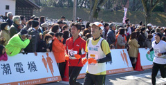 序盤の市街地を走る区間は風もほとんど感じず,目標達成に向けて順調に滑り出しました。10q過ぎで大会ゲストである高橋尚子女史とハイタッチをした後,コースは海岸線に近付きました。ここで海岸から吹き募る横風を強く感じました。これは復路では向い風になると思い,後半は辛くなる区間が増えることを覚悟しました。風自体は往路では概ね追い風となるようで,前半は気になりませんでした。それより過去2回の出場では沿道の人垣が途切れることなく続いていたのに,今回は人出が随分減っているように感じられました。新コースになってから4年目で地元の人たちもかつての熱気は冷めてきたのでしょうか。第1折り返しに向うところで3時間のペースランナーとすれ違いました。その差は1qもないくらいで,ひょっとしたらゴールまでに追い付くことがあるかもなどと考えました。