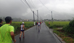 コースは,かつての山下湖周回から,由布院駅前をスタート/ゴールとする町内周回コースにリニューアルされました。さすがに観光エリアの周回とはならないまでも,スタート後数百mは駅前の大通りを走り抜けることとなり,また,8km付近の直線コースでは(晴れていれば)正面に由布岳の全容を望むことができます。今回は雨で走りにくい上に何も見えない状況でしたが,また晴れた日に走ってみたい道です。当日は朝から雨で,早朝に山口を出発するときから憂鬱でしたが,とりあえず予定どおり湯布院に到着し,指定駐車場(湯布院中学校)からシャトルバスで会場の湯布院小学校に向かいました。小学校のグラウンドは案の定雨水を吸って泥田状態でしたが,今回のコースには含まれておらずひと安心。しかし,雨の勢いが強くアップをする気にもならないため,スタート直前まで更衣室で休んでいました。男子更衣室は,小学校隣の公民館のホールが割り当てられており,椅子に座って仮眠を取ることができました。 スタート20分前に重い腰を上げ,由布院駅前に移動。すでに多くのランナーが来ていましたが,雨が降っているので全員駅舎や近くの店舗の軒下に待機しており,なかなか出てきません。5分前くらいになってようやくライン上に集まりはじめました。 11:05に10kmの部がスタート。参加者が多いので駅前商店街は相当なスローペースとなり,その後市道に出てからも,道が狭くコーナーが連続するので思うように走れません。途中には2ヶ所,合わせて300mくらいの砂利道区間もありましたが,あまり荒れておらず(近々舗装されそうな感じ?)走りにくさはありませんでした。給水エイドは3ヶ所(2km,4.5km,7.5km)あり,今回の天気ではあまり恩恵を感じませんが,晴れた日は大いに助かりそうです。