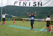 第2チェックポイント旧三段峡駅前には下りで一緒になった選手と団子状態で入ったのですが,彼・彼女らは平たんなコースになるとどんどんペースアップしてゆき,あっという間に私との間に大差ができました。60qまでのラップは私も過去最高なのですが,それでもかないませんでした。脚を使い過ぎたダメージから上り区間は積極的に歩くことにし,脚への負担を軽減することに努めました。特に昨年無理して走った井仁までの区間は,速歩きに徹し次の下りに備えました。井仁からの下りは昨年歩かなかっただけとい状態でしたが,今年は脚が壊れる寸前になりましたが走りました。その後の平坦区間も走り続け順位も少しずつ上げていきました。つい先日80q地点付近でがけ崩れがあったとかで,ここがその地点を迂回する新コースになっていました。それは仕方がないのですが,80qの距離表示は旧ルートに置き去りになっていたようで,新ルート上に80qの距離表示はありませんでした。85q地点で自己記録更新まで27′を残していたので,この時点で自己記録更新は確信しましたが,その後の温井ダム横の階段昇りは4年間の中で最も辛いものでした。最後は脚が壊れてもよいと思いながら走っていましたので,ゴール後本当に脚が壊れていました。そうこうしているうちに福岡県代表の藤田さんが私から約10分遅れてゴールされました。その際にアナウンス嬢から今年は蜂の被害はありませんでしたかと聞かれ,大きなジェスチュアで大丈夫と回答されていました。