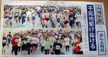 ハーフは10時にスタート、カゼはだいぶ良くなりましたが中団からゆっくり走りました。コースは干拓地なので長い直線が多くあります。5Kmを約27分、10Kmを約56分で通過、中間点は59分30分くらいでした。復路は往路とコースが一部異なるため中間点の先500m位先で折り返しです。更にペースは遅くなりましたが、15Kmは約1時間25分、20Kmは約1時間55分と、「出雲くにびき」の関門時間を5分ほどクリアできるタイムで通過して、かろうじてゴールにたどり着きました。