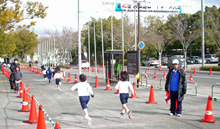 10時に小学校1年生2qの部がスタートしてから,1時間50分もたって11時50分にやっと10qの部のスタートとなりました。このころは空一面雲に覆われ陽射しがなくなり,私のような光合成ランナーには非常に辛い状況となりました。スタート地点には通常国会の会期中であるにもかかわらず,地元選出の中川俊直衆議院議員の姿があります。これで政治家には負けられないと気合は入りましたが,脚は思うようには動きません。スタートダッシュを決めた代議士との差は開くばかりでした。コースは昨年から折り返し点が3箇所に増えており,また,スタート後競技場の外周を走るように変更されています。第1折返しでは代議士との差を一定に保つのが精一杯でしたが,第2折返しに向かう上り坂で代議士の足が鈍ってきました。ここで差を縮めて第3折返しに向かう途中で代議士を抜き去ることに成功しました。第3折返しを過ぎると冷たい風が向かい風から追い風に変わり,ペースアップをして何とか後続を振り切ってゴールしました。スタート前は45′が切れたら御の字と思っていたので,結果はまあ満足しています。結局レースの10qを走っても汗をかいたとの実感はないままでした。